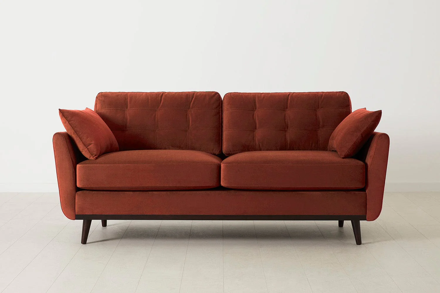 Das Zweisitzer-Sofa Model 10 im Mid-Century-Stil vereint den Retro-Stil mit modernem Komfort. Es umfasst ein Massivholzgestell, ausgestellte Beine und eine Polsterung mit Doppelnähten.